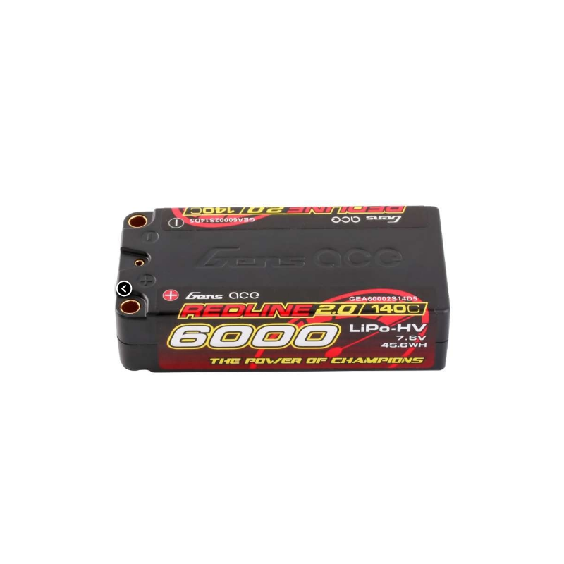Pack de batteries LiPo Gens Ace Redline 2.0 Series 2S 140C 6000mAh Hardcase, avec une balle de 5,0 mm installée en usine. Les consommateurs font confiance au nom Gens Ace pour offrir la fiabilité et les hautes performances qu'ils attendent. Le pack de batteries LiPo Gens Ace 140C 2S 6000mAh 7,6V HV a une capacité élevée et un taux de décharge élevé qui vous offre la puissance et l'autonomie que vous attendez.