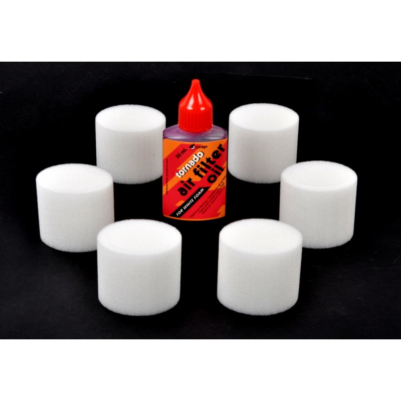 Kit de 6 mousses Mugen/XRay avec flacon d'huile de filtre a air Tornado.