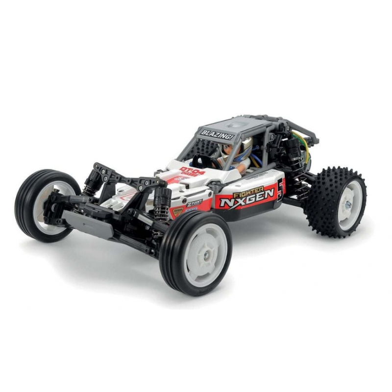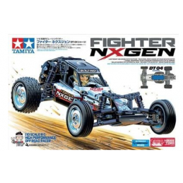 Ce modèle RC en kit s’inspire des buggys de course monoplaces réels populaires aux Etats-Unis. Son nouveau châssis DT-04 à 2 roues arrière motrices est d’une grande facilité d’assemblage. Le qualificatif «NXGEN», contraction de l’anglais «Next Generation» (nouvelle génération) suggère des performances tout-terrain améliorées et une grande variété de configurations. Les bras de suspension avant et arrière, les éléments de transmission proviennent des châssis DT-02 et DT-03, et les pièces optionnelles des châssis DT-02 et DT-03 peuvent être utilisées sur ce châssis. La carrosserie est l’autre point fort du RC Fighter NXGEN !