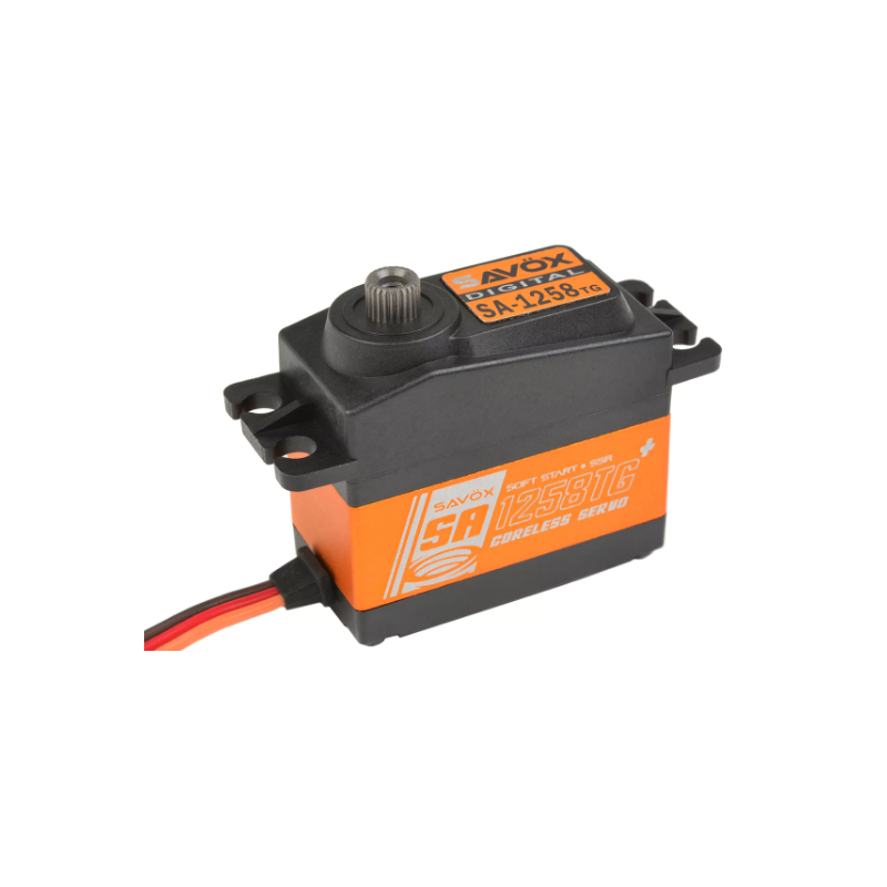 Le servo SA-1258TG Plus est un servo à couple élevé et est parfait pour ceux qui recherchent un jeu minimisé à utiliser sur les surfaces volantes des avions RC.